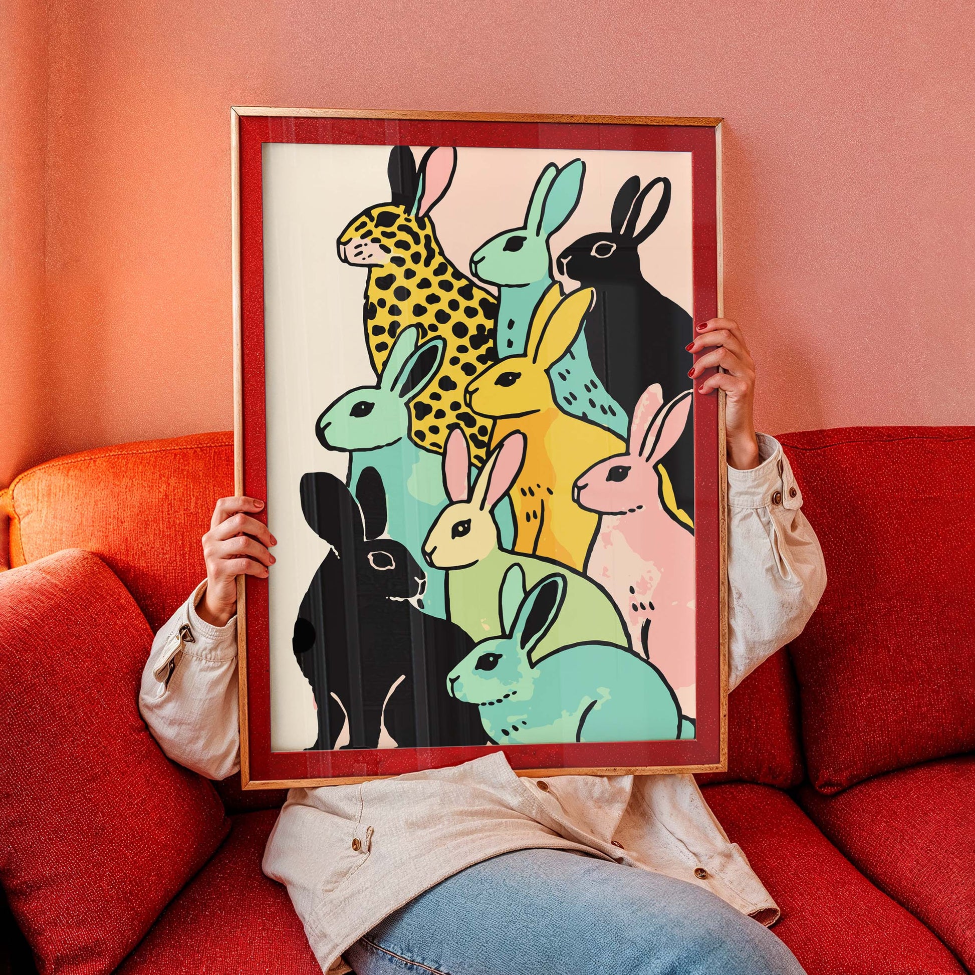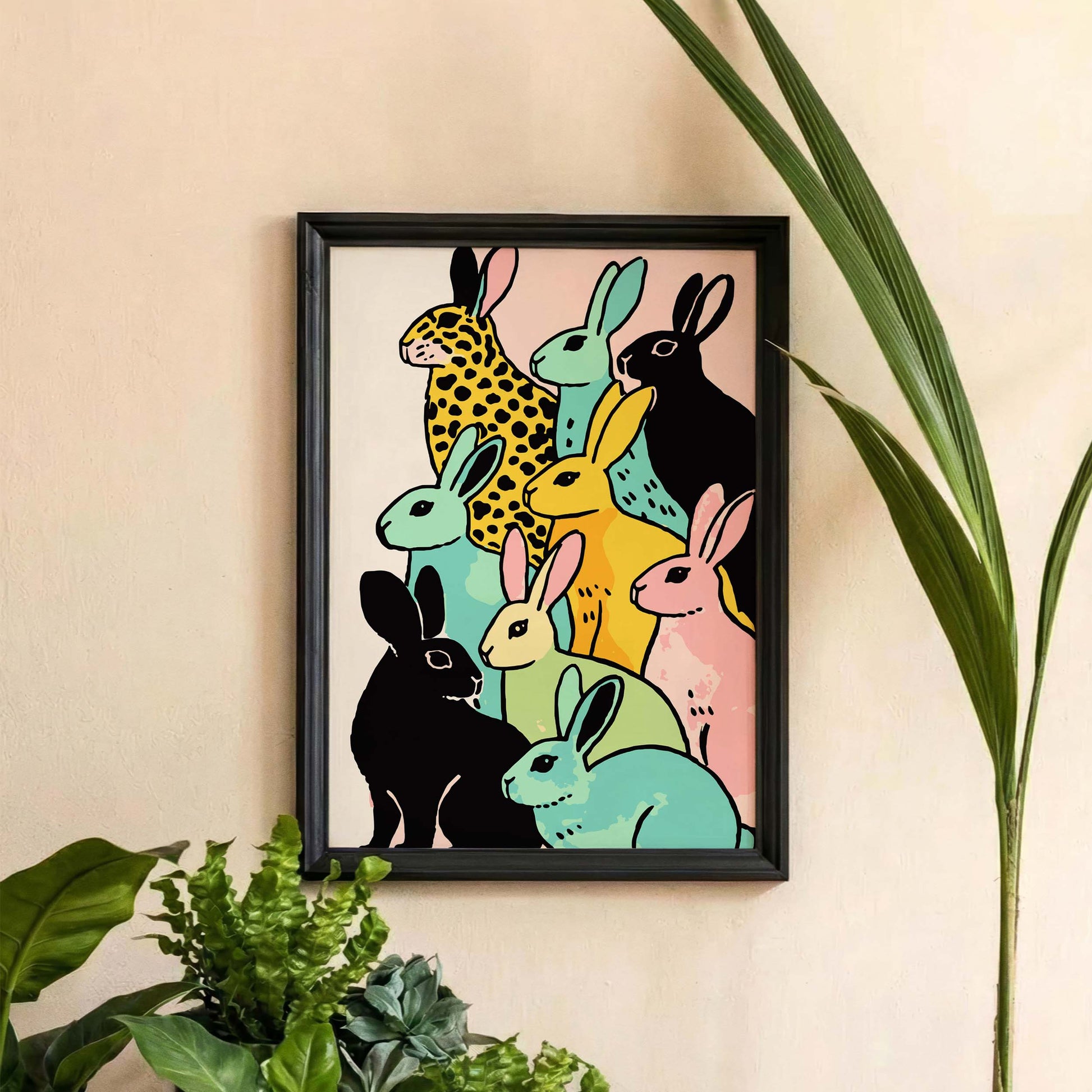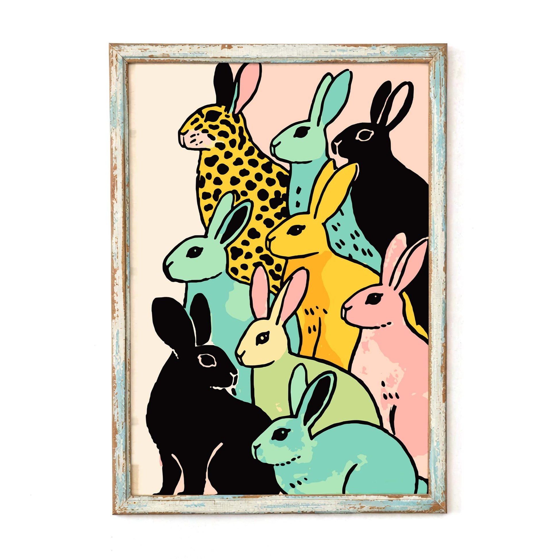 Colorful Rabbits Pattern Poster Wall Art